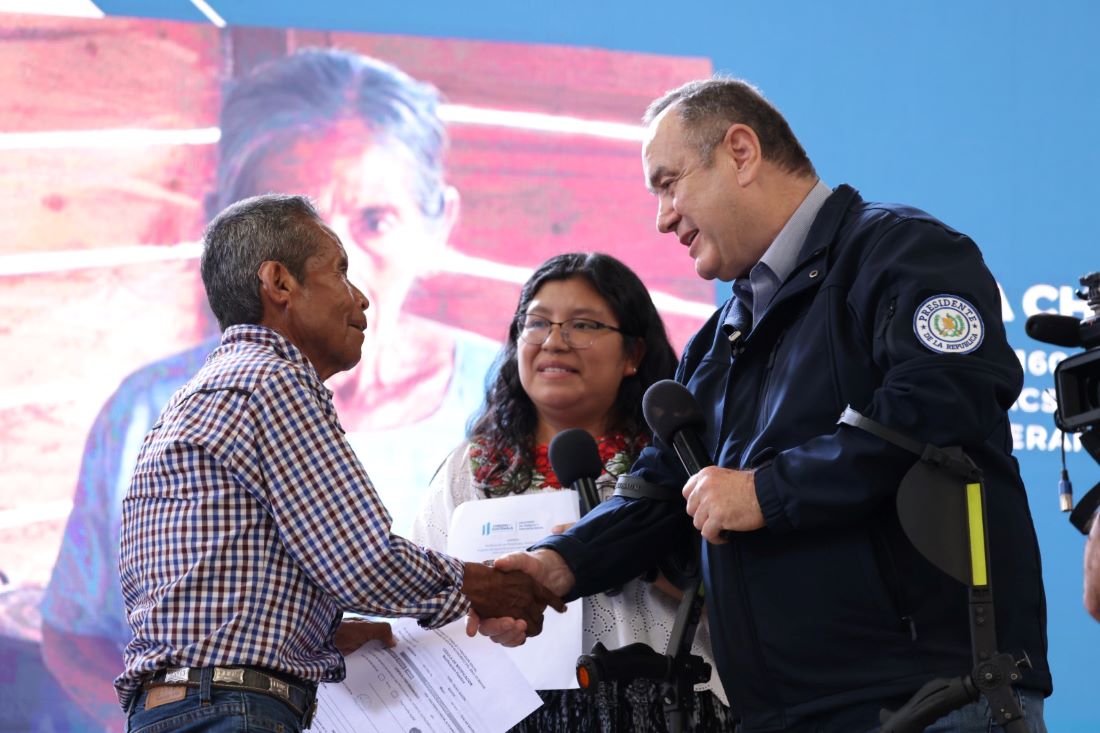 Presidente Giammattei entregó notificaciones del Programa de Adulto Mayor y alimentos en Cobán, Alta Verapaz