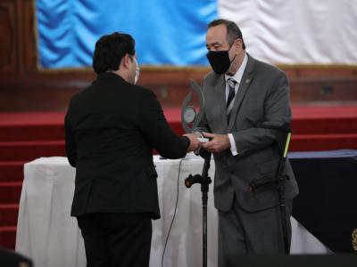 El presidente de la República Alejandro Giammattei participa en la Primera Entrega del Primera entrega del Premio Nacional por trayectoria y aportes al desarrollo de las Artes Circenses.