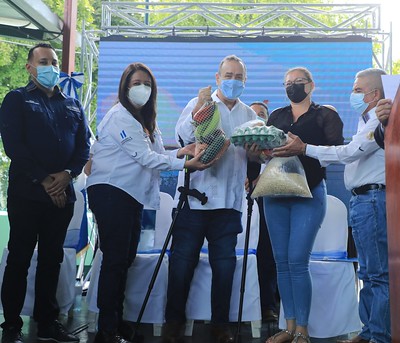 Quiero agradecer al Programa Mundial de Alimentos por las gestiones para ayudar y seguirlos apoyando en este caso con lo utensilios que se van a necesitar en la cocina que ustedes miran, sartenes, batidoras, de manera que cuando regresen los niños a esta escuela, encuentren una cocina preparada para darles su alimentación como Dios manda y si no podemos regresar a clases, no tengan pena, los alimentos a través de la gran labor que realizan las organizaciones de padres de familia y los maestros, unidos, es lo que nos ha permitido tener el éxito y ser reconocidos, como pocos países en el mundo en adaptar sus programas de alimentación escolar para que no dejara de llegarles a los niños.