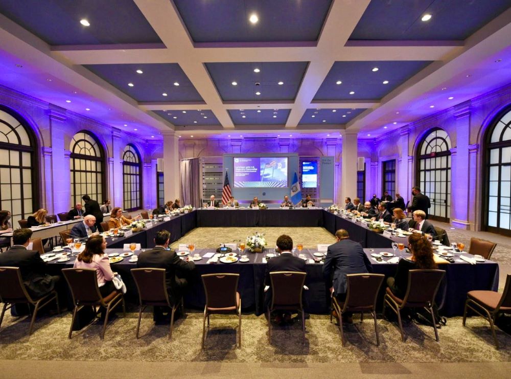 El gobernante guatemalteco, al continuar las actividades de su visita de trabajo a Washington, encabezó una reunión con directivos y miembros de la Cámara de Comercio de Estados Unidos, una influyente organización privada que agrupa a más de 300 mil empresas socias y millones de afiliados alrededor del mundo.