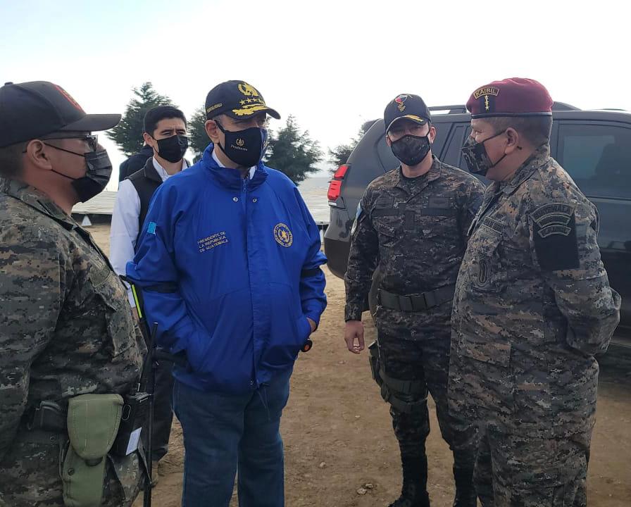 El Presidente Constitucional de la República y Comandante General del Ejército, Alejandro Giammattei, efectuó este martes 18 de enero, una visita de supervisión al destacamento militar que se construye en el municipio de Santa Catarina Ixtahuacán, Sololá, en el marco de la mesa de diálogo que presidió con la finalidad de cesar la conflictividad con el municipio de Nahualá, alcanzar concesos y asegurar la tranquilidad de la población de ambos municipios.