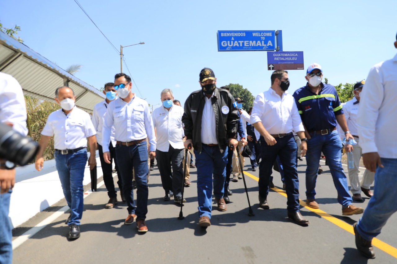 El presidente Alejandro Giammattei participa en la inauguración del Mantenimiento y Rehabilitación Estructural del Puente Vehicular y Ferroviario Fronterizo Rodolfo Robles, en Ayutla, San Marcos.