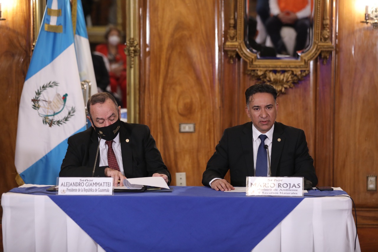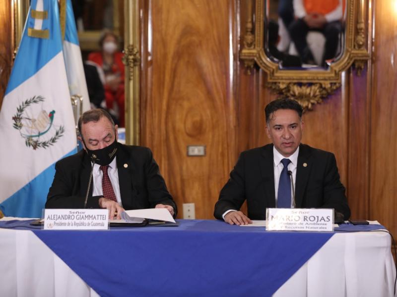 El presidente de la República, Alejandro Giammattei, junto al Ministro de Ambiente, Mario Rojas participó en el lanzamiento de la Estrategia Nacional para el Manejo de Incendios Forestales.