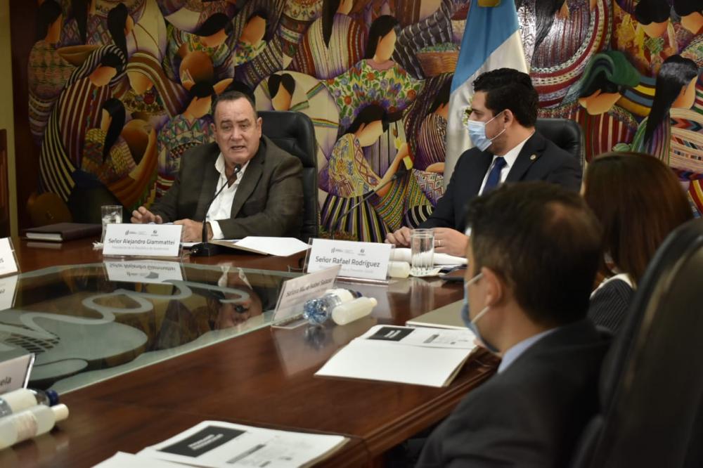 Guatemala, 14 de abril de 2021. Autoridades del Ministerio de Trabajo y Previsión Social se reunieron con el presidente Alejandro Giammattei, a quien presentaron los avances de sus planes y proyectos para este año, mismos que están dentro de las prioridades presidenciales.
