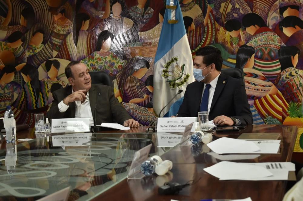Guatemala, 14 de abril de 2021. Autoridades del Ministerio de Trabajo y Previsión Social se reunieron con el presidente Alejandro Giammattei, a quien presentaron los avances de sus planes y proyectos para este año, mismos que están dentro de las prioridades presidenciales.