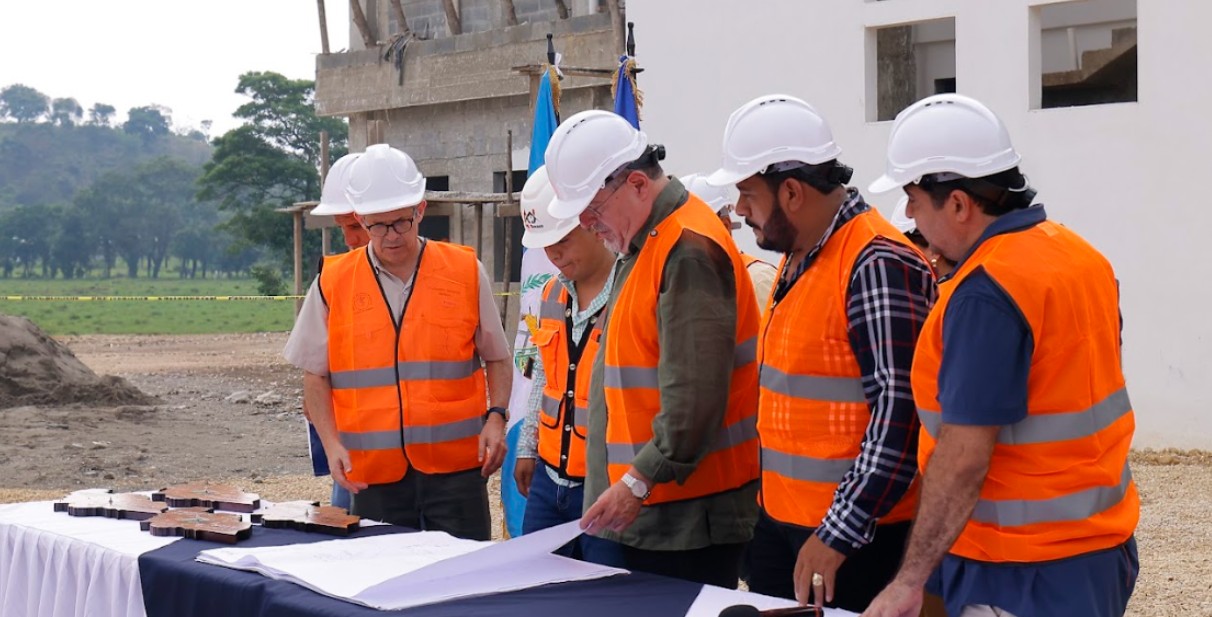 Presidente y ministro de Salud, Joaquin Barnoya, supervisan construcción del CAIMI de la Libertad, Petén