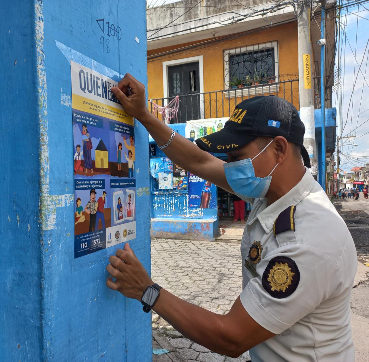 En otra región, agentes de la Delegación Departamental de Intervención en Relaciones Comunitarias de la Comisaría 74 ubicada en Jocotenango, Sacatepéquez, realizaron recorridos de seguridad ciudadana y divulgación de las campañas de sensibilización sobre diferentes medidas preventivas. Para ello utilizaron distintos tipos de material visual, ubicados en puntos estratégicos del municipio.