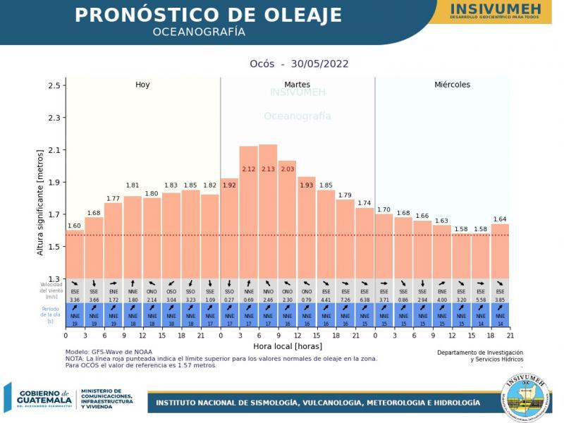 El Departamento de Investigación y Servicios Hídricos Sección de Oceanografía del Instituto Nacional de Sismología, Vulcanología, Meteorología e Hidrología -INSIVUMEH- emitió el Boletín Especial 03-2022, debido a una altura significante de ola.