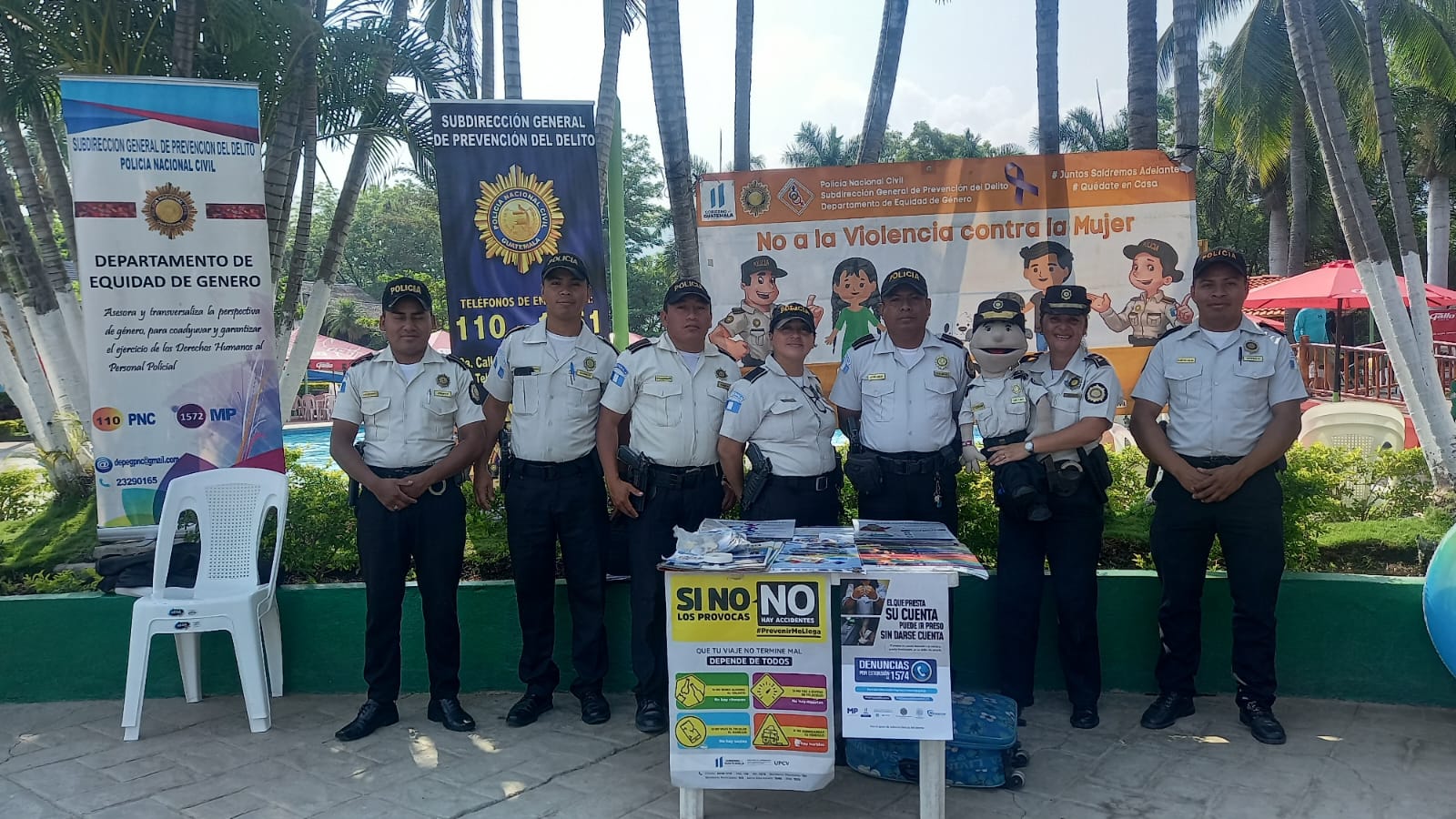 En el centro turístico Parque Acuático Guastatoya, El Progreso, agentes policiales instalaron un stan preventivo acompañado del agente LESHI, para dar recomendaciones a las personas que visitan dicho balneario, para prevenir hechos contra el patrimonio y contra la vida.