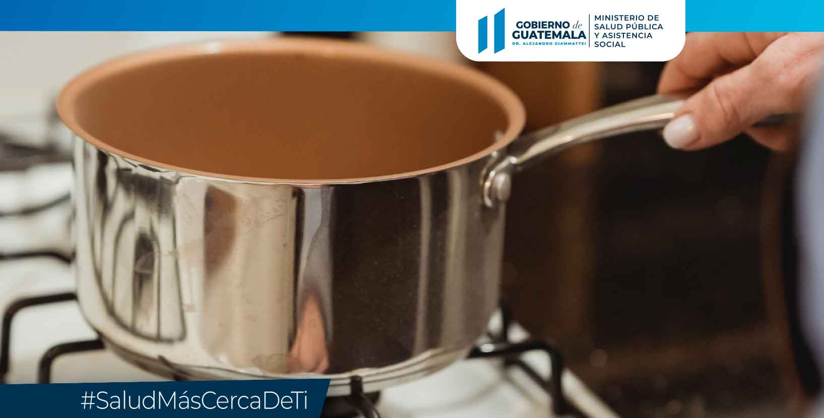 - Los trastos y utensilios de cocina, lávelos con agua y jabón y posteriormente desinféctelos con agua clorada, use una cucharadita de cloro.