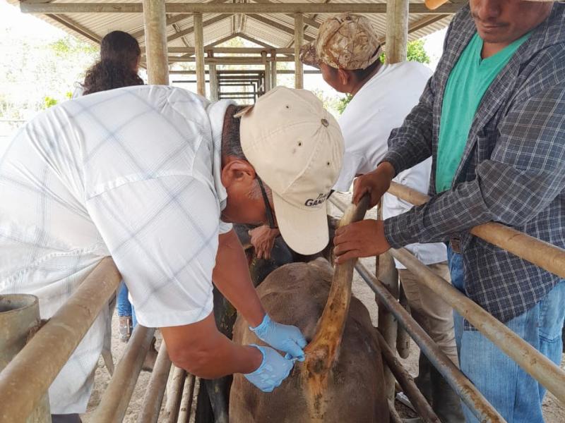 Una jornada de control bovino, para prevenir enfermedades como brucelosis y tuberculosis, se efectuó en la aldea El Mango, municipio de La Libertad, Petén, en la cual se extrajeron muestras de sangre en 73 bovinos.
