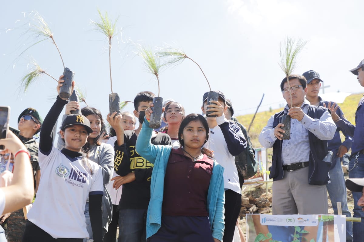 En San Andrés Sajcabajá, Quiché, estudiantes del Instituto Nacional de Educación Básica aceptaron el reto de reforestar y participaron en una jornada en el Cerro Sajmajil, la cual tuvo una parte de educación e inducción sobre cómo plantar un árbol.