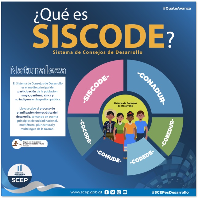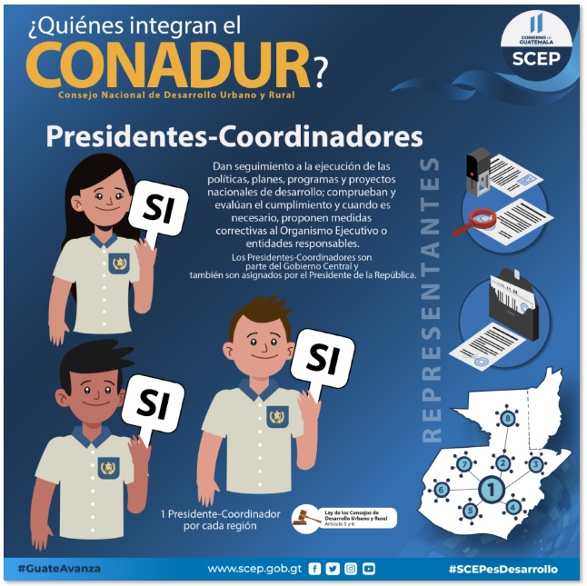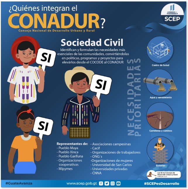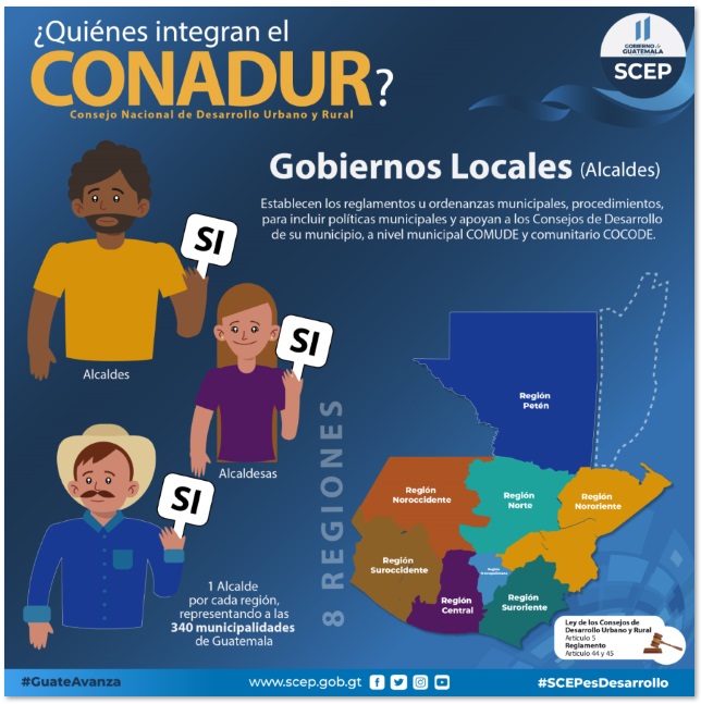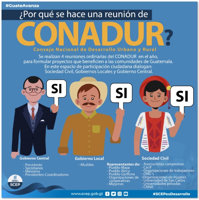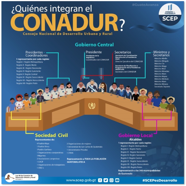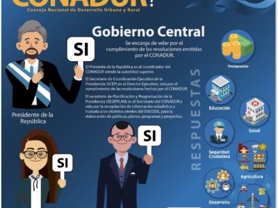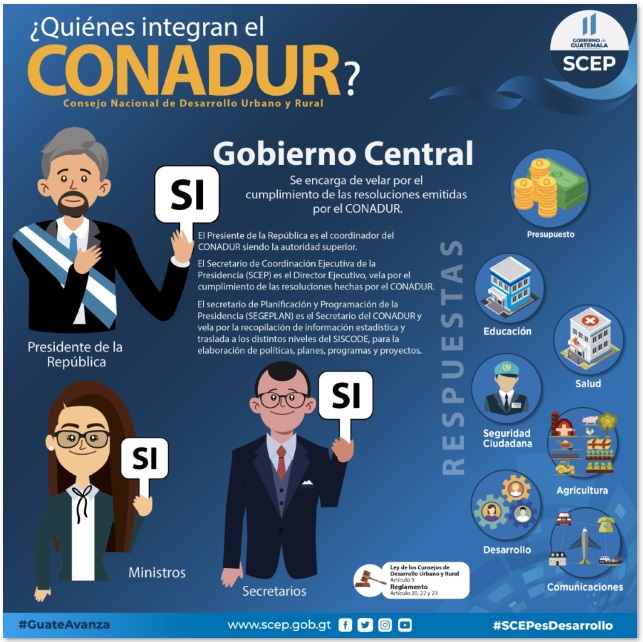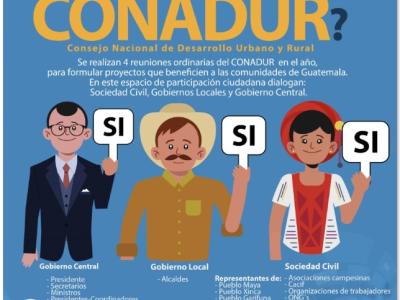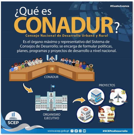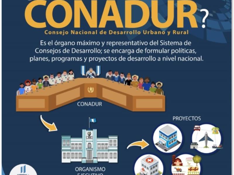 El Conadur es el órgano representativo del Sistema de Consejos de Desarrollo (Siscode), encargado de formular las políticas, planes, programas y proyectos de desarrollo a nivel nacional.
