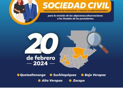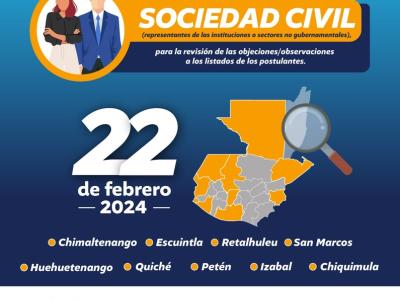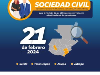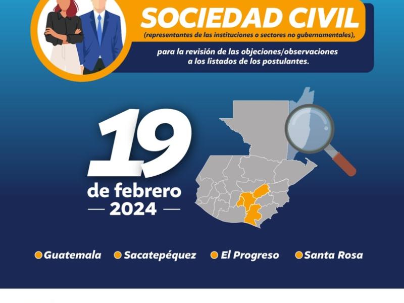 Según la normativa los Consejos Departamentales de Desarrollo se encuentran en la fase de segunda reunión extraordinaria, para así ver y analizar las respectivas objeciones / observaciones realizadas por Sociedad Civil, teniendo inclusive del 23 de febrero hasta 01 de marzo, para trasladar las ternas seleccionadas al Presidente Constitucional de la República, a través de la Secretaría General de la Presidencia.