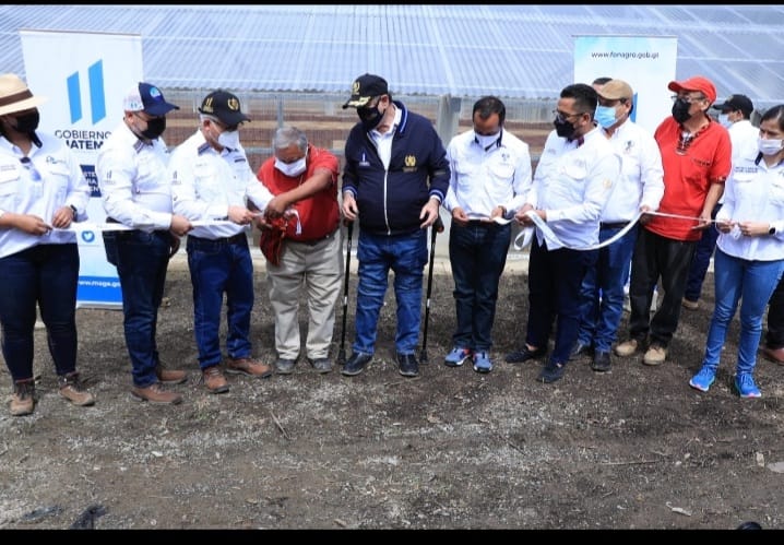Un módulo para fermentar el cacao, dos secadoras y una bodega para almacenar el producto, forman parte de la infraestructura de un beneficio inaugurado por el presidente de Guatemala Alejandro Giammattei, el ministro de Agricultura, Ganadería y Alimentación, José Ángel López y Harold Estrada, gerente general del Fondo Nacional para la Reactivación y Modernización de la Actividad Agropecuaria (FONAGRO), en Santa María Cahabón, Alta Verapaz.