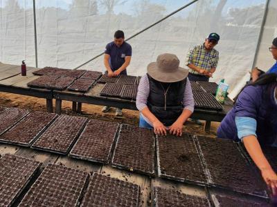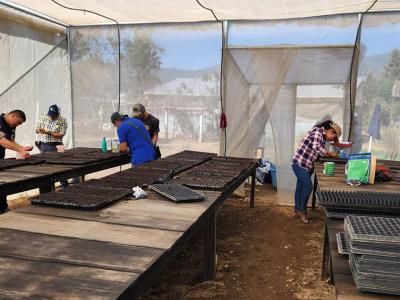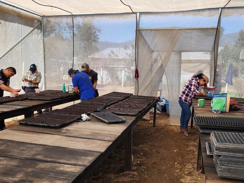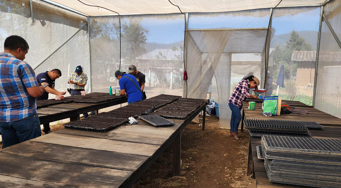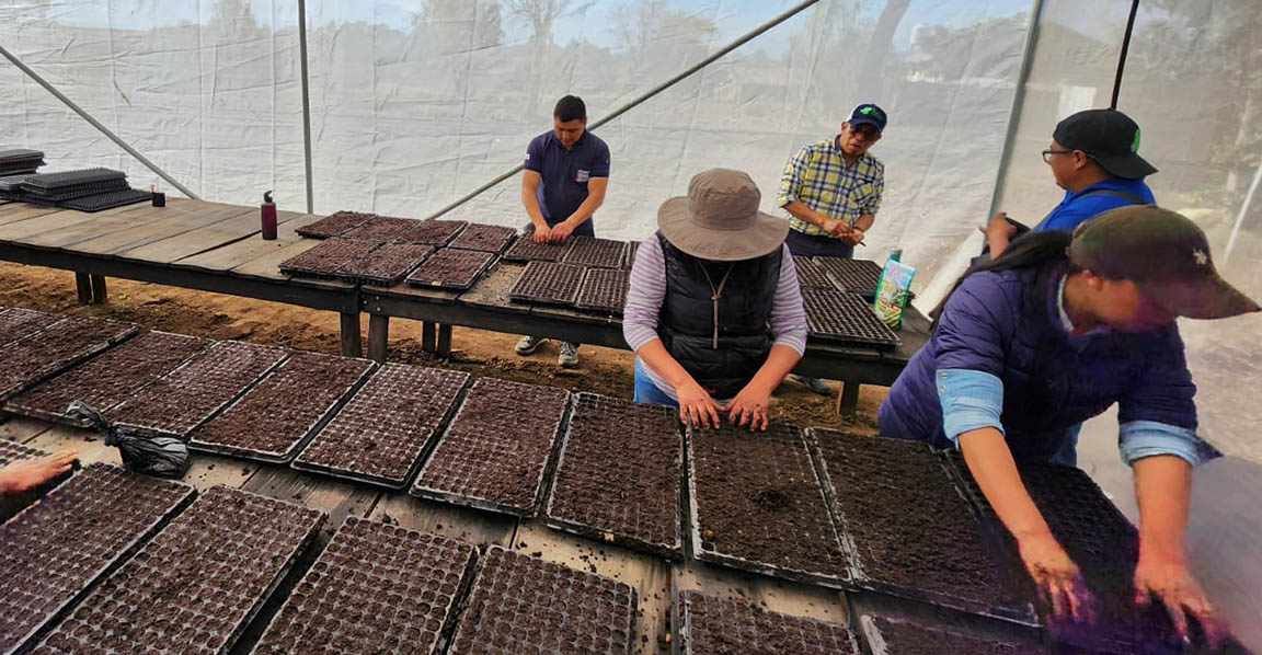 Es así como este cuatro de marzo, los grupos familiares aprendieron a desinfectar el sustrato y luego realizar la siembra de semillas en bandejas, con variedades de cebolla, apio, acelga, lechuga, coliflor, brócoli, repollo, hierba mora y pepino.