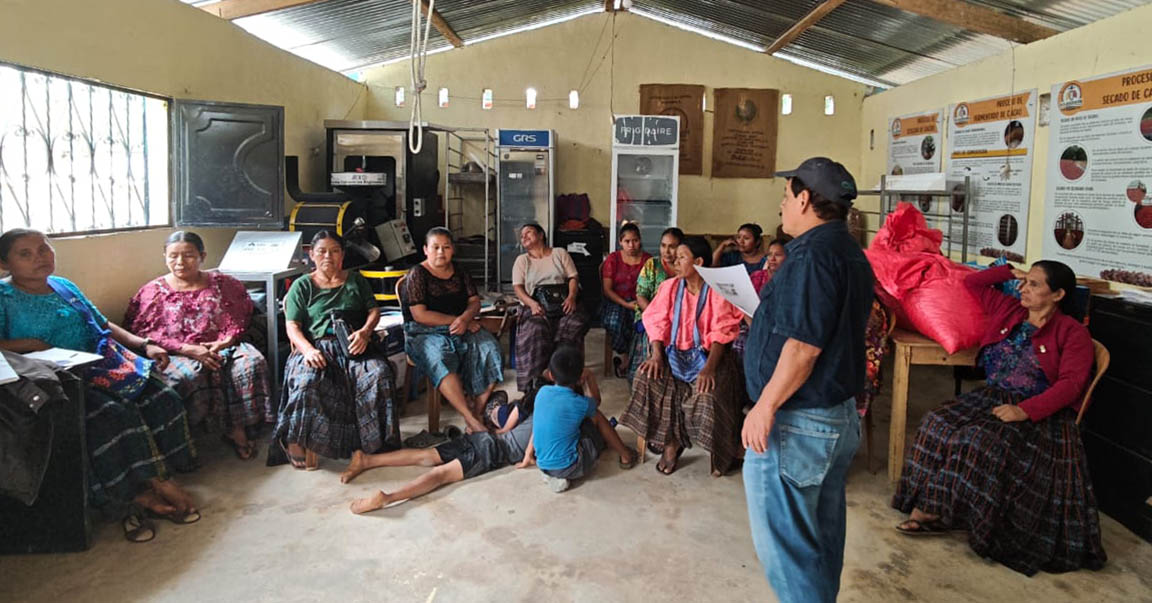 Las beneficiarias son mujeres de la comunidad Jolomijix II, del municipio de Panzós, Alta Verapaz, quienes se dedican al cultivo de cacao orgánico, comercializado como materia prima. Este proceso contribuirá al desarrollo de capacidades para mejorar la producción, transformación y gestión del cacao y sus derivados.