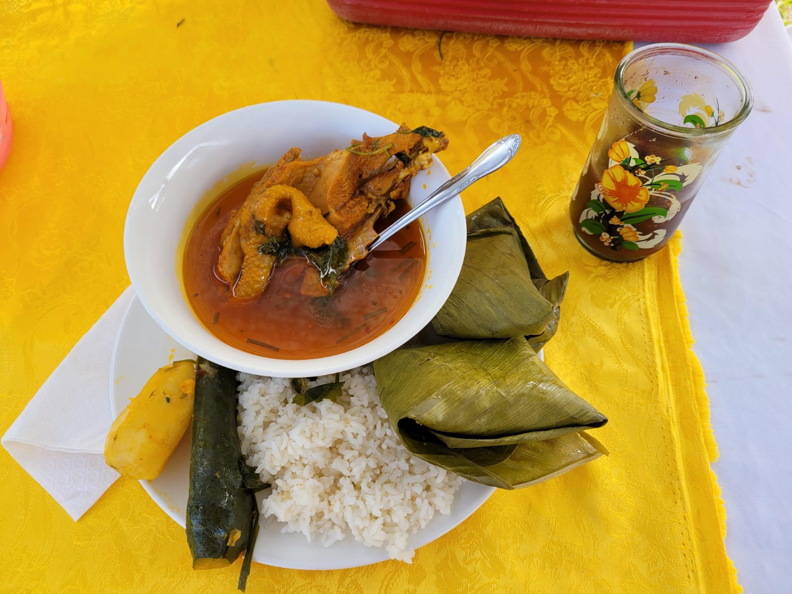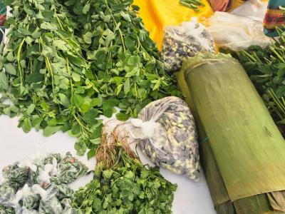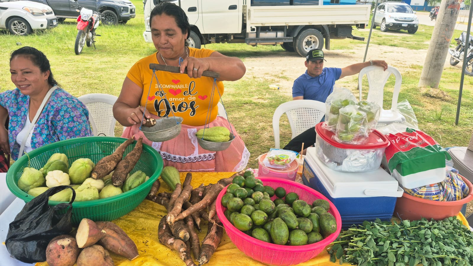 Durante la actividad ofrecieron una variedad de productos frescos y elaborados, entre ellos chipilín, frijol camagua, yuca, camote, conservas, chile chiltepe, cilantro, jocotes y caldo de gallina criolla, todos provenientes de sus huertos.