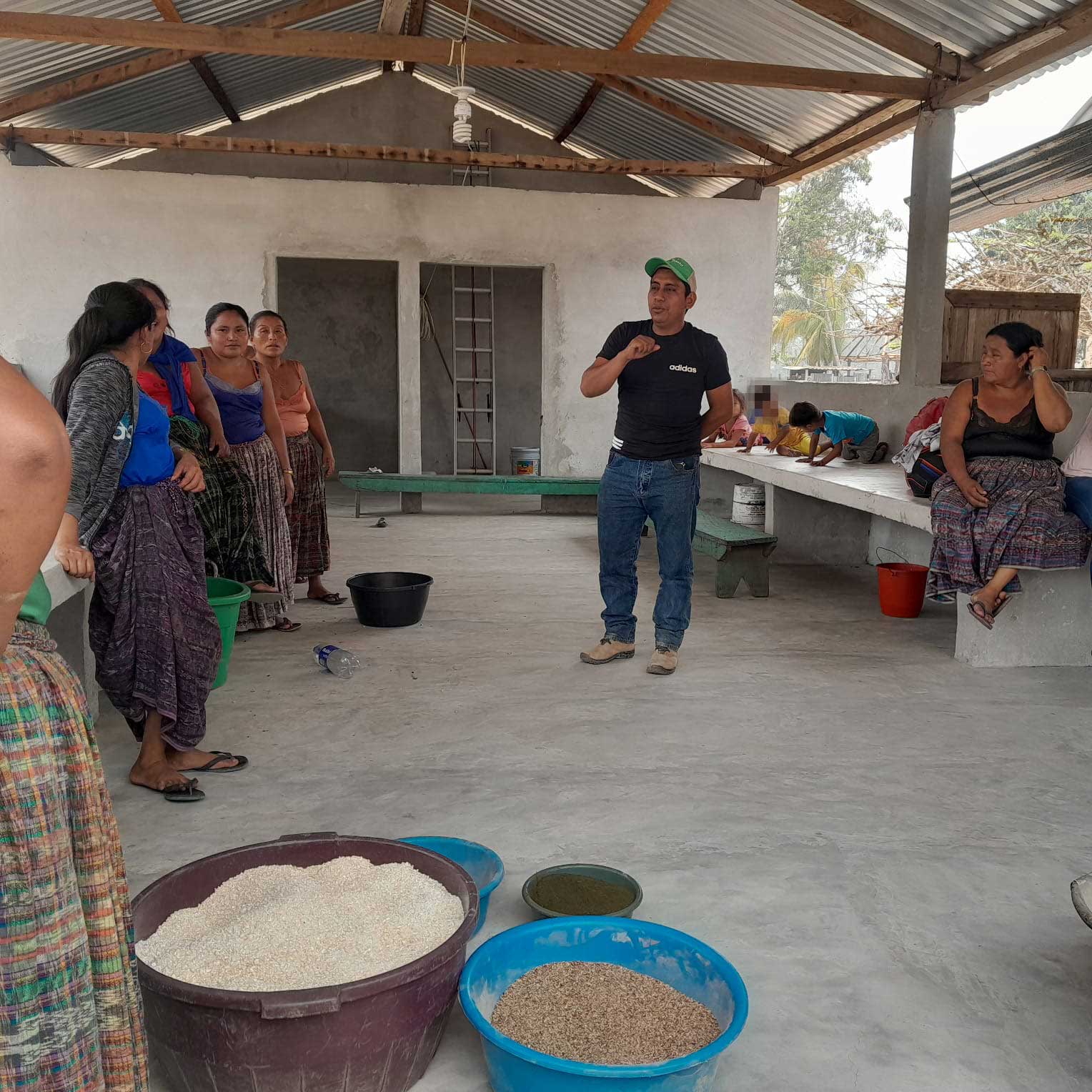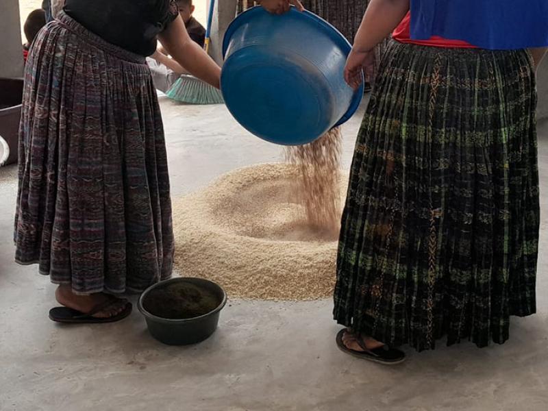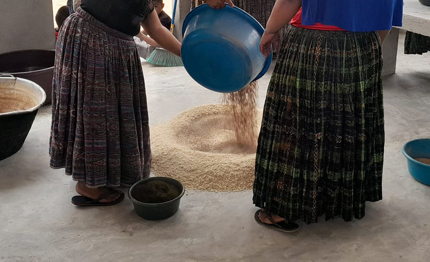 Una capacitación y asistencia técnica en la elaboración de concentrado orgánico, fue brindada a 300 productoras y productores de 15 grupos de Sayaxché, Petén, proceso en el cual se utilizan, entre otros, los siguientes ingredientes como maíz, frijol, cáscara de huevo (fuente de calcio), aceites vegetales, hojas de yuca, chaya, moringa, madre cacao y sal mineral.