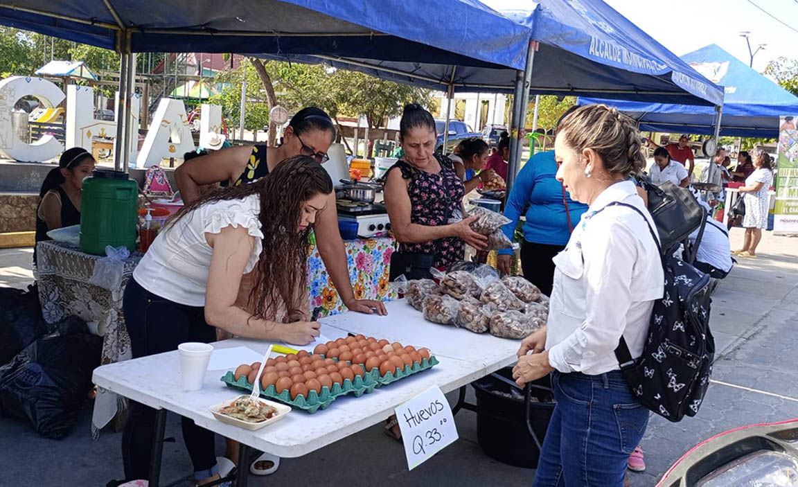 Entre los productos ofrecidos destacaron la yuca, macal, camote, tomate, hierba mora, chaya y diversos tipos de chile, además de yogures naturales, quesos, aves de patio y conservas.