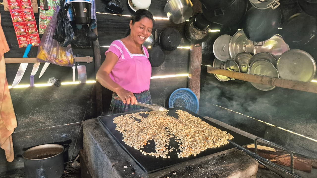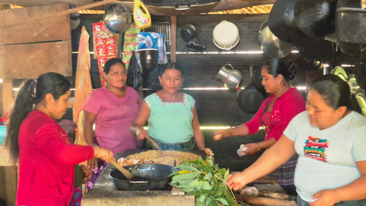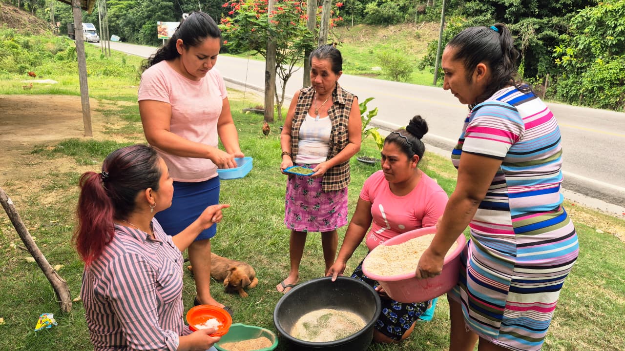 Durante la capacitación, los participantes aprendieron a preparar un concentrado nutritivo elaborado a base de maíz, frijol, hojas de yuca o papaya, más cáscara de huevo, ingredientes accesibles en sus comunidades que permiten mejorar la alimentación de las aves de manera económica y sostenible.