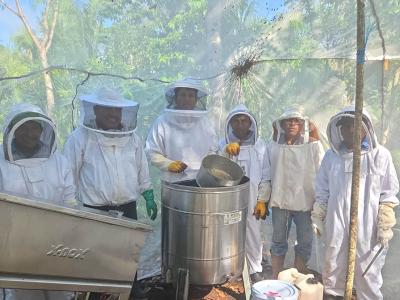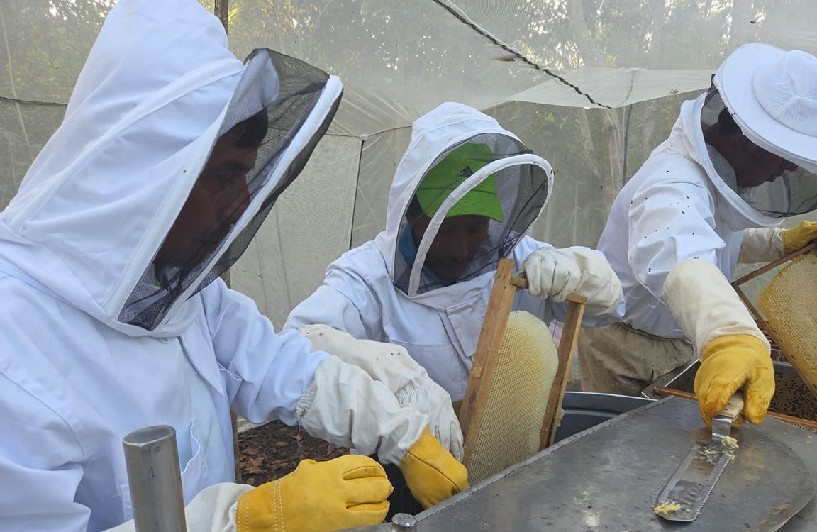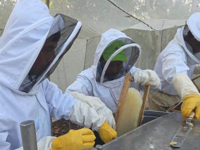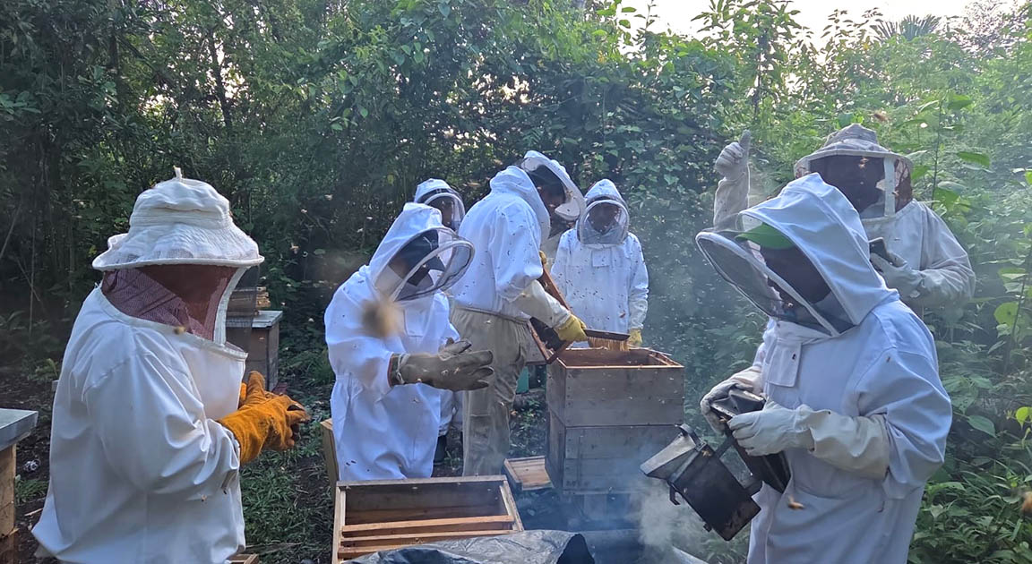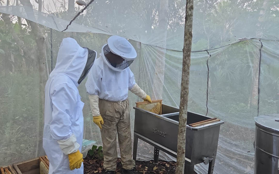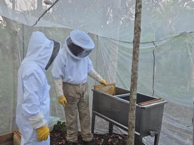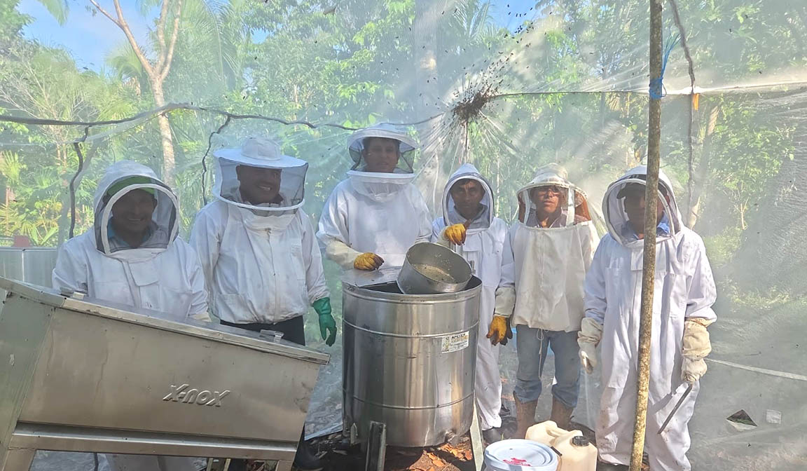 Los participantes llevaron realizaron una cosecha técnica, aplicando todas las medidas de higiene y utilizando el equipo completo de extracción de miel de manera adecuada.
