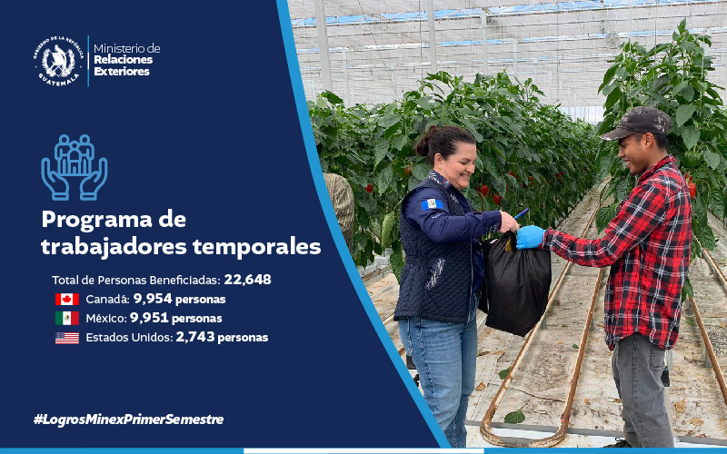 Como parte del trabajo interinstitucional, el Ministerio de Relaciones Exteriores y el Ministerio de Trabajo y Previsión Social, dieron continuidad al programa de trabajadores temporales de guatemaltecos, cuyos destinos principales son: Canadá, Estados Unidos y México.