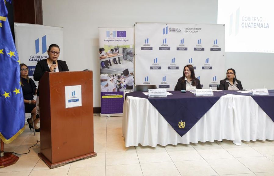 La entrega se llevó a cabo durante evento realizado en las instalaciones del Ministerio de Educación, y la misma forma parte del cumplimiento de objetivos del Programa de Apoyo al Empleo Digno en Guatemala (PED), específicamente del fortalecimiento al marco institucional para la implementación de la Política Nacional de Empleo Digno en Guatemala.