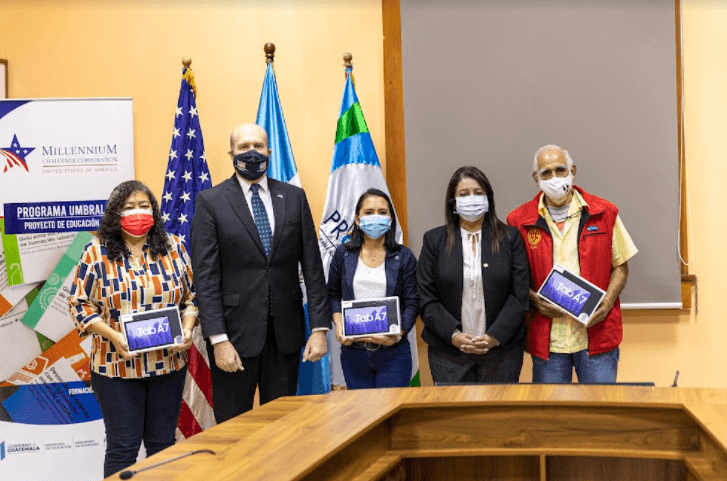 El Programa Nacional de Competitividad -PRONACOM- por medio del Programa Umbral financiado por la Millennium Challenge Corporation -MCC- del Gobierno de los Estados Unidos y el Ministerio de Educación -MINEDUC- realizaron la entrega simbólica de tabletas electrónicas a docentes que forman parte de la segunda cohorte del Profesorado de Enseñanza Media con especialidad en Matemática para ciclo básico.