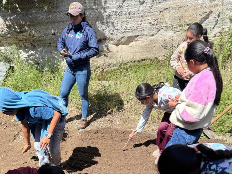 De forma complementaria, la profesional de campo del Departamento de Agricultura Urbana del Viceministerio de Seguridad Alimentaria y Nutricional (VISAN), junto con personal de la Agencia Municipal de Extensión Rural (AMER) del MAGA, impartieron una capacitación técnica relativa a los métodos de riego y técnicas adecuadas de siembra, orientada a garantizar el éxito de los huertos escolares.