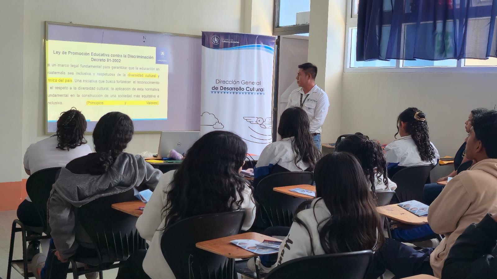 Un grupo de 25 estudiantes del Instituto Nacional de Educación Diversificada participó, el pasado 9 de abril de 2026, en el taller sobre la «Ley de Promoción Educativa contra la Discriminación, Decreto 81-2022».