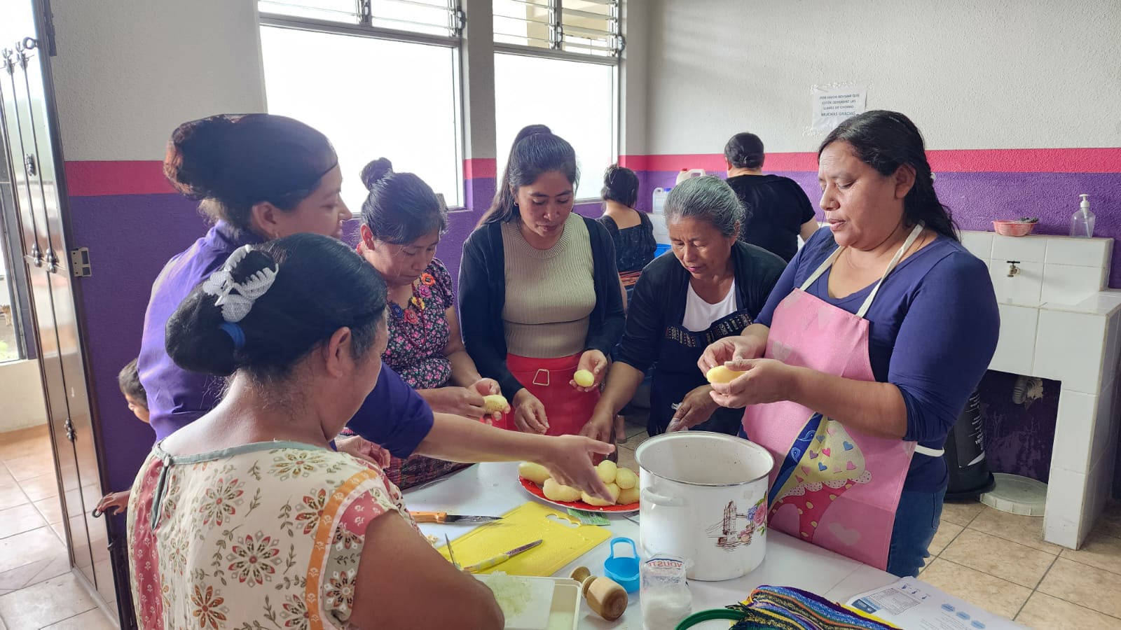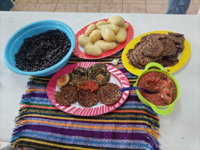 Como parte práctica la Educadora de Hogar Rural, Lys Guerra, impartió una charla relativa a la inocuidad alimentaria y dirigió la preparación de dos recetas nutritivas: tortitas de frijol y tortitas de papa con hierbas, elaboradas con ingredientes accesibles y ricos en nutrientes.