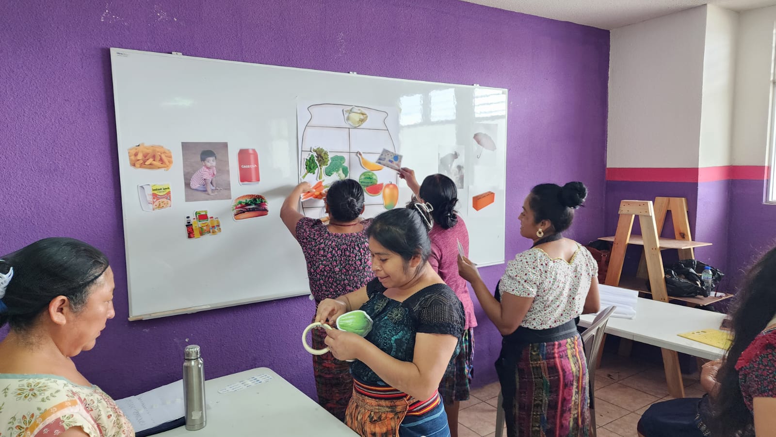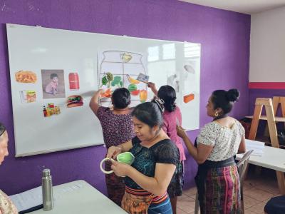 En la capacitación se expuso la temática relativa a la clasificación adecuada de los alimentos, utilizando como herramientas didácticas las Guías Alimentarias para Guatemala y la olla familiar, una representación visual que facilita la comprensión de cómo debe componerse una dieta equilibrada.