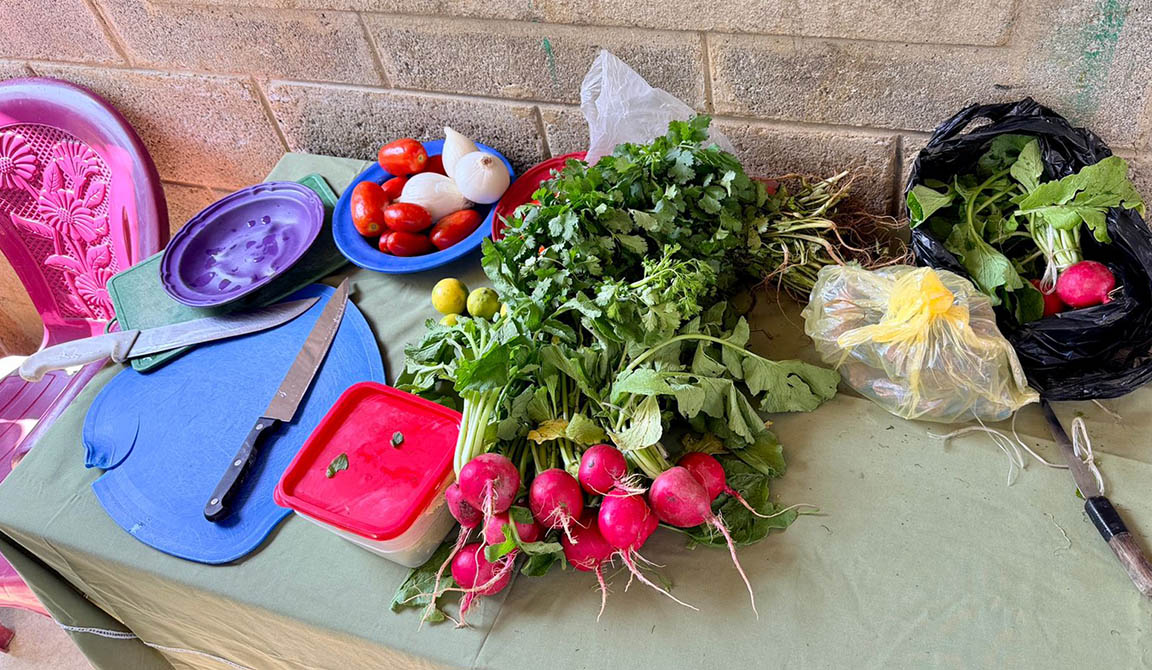 La actividad se concentró en la preparación de esta receta tradicional utilizando rábano, cilantro, tomate y cebolla, ingredientes frescos obtenidos directamente de los huertos familiares de la comunidad.