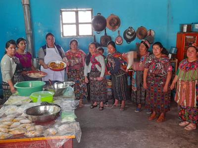 Así también, en el cantón Pacup Siguan, Zunil, la educadora de Hogar Rural instruyó a 16 familias del CADER "Las Rosas" en la elaboración de empanadas de plátano rellenas de queso.