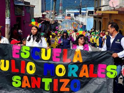 Las calles se llenaron de colores, música y alegría, gracias a la participación de educandos de la escuela oficial urbana mixta Julio Morales Santizo, plantel que se sumó a la coordinación del recorrido.