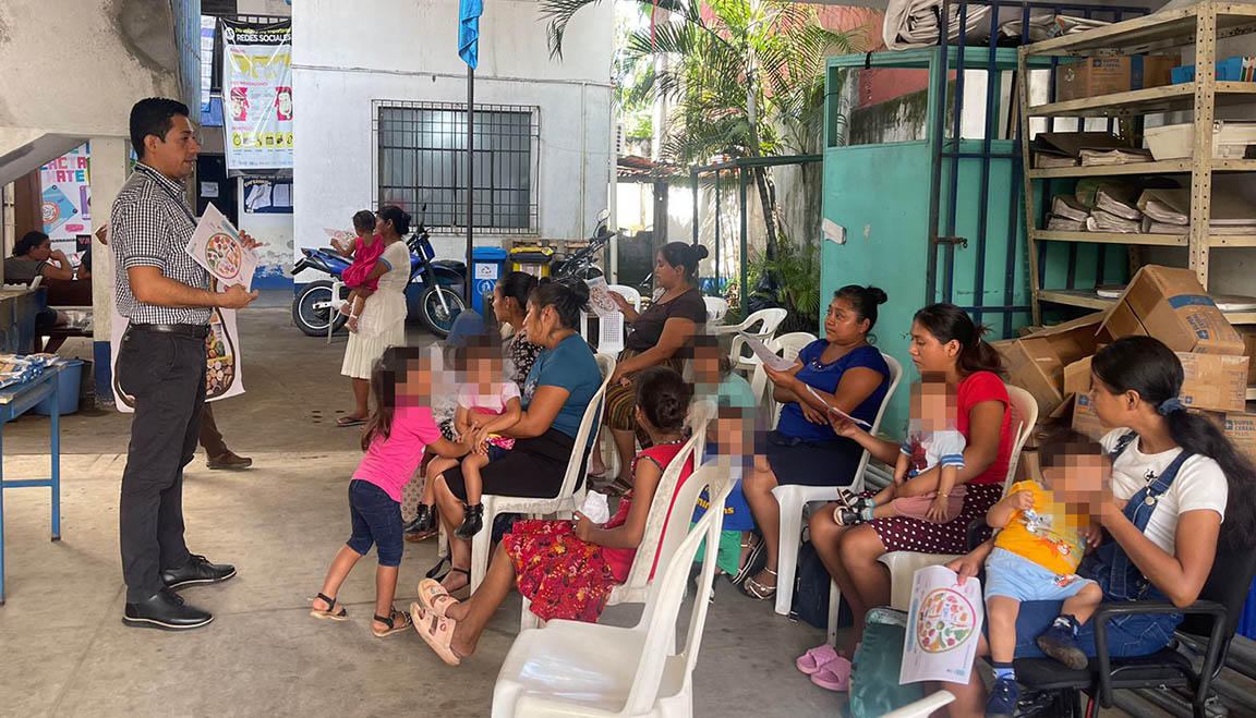En el Centro de Salud de El Asintal, se ofreció una charla a madres con hijos en seguimiento por desnutrición aguda. La actividad incluyó explicaciones acerca del plato saludable, utilizando como referencia los alimentos indicados en la Olla Alimentaria para Guatemala. Las madres crearon ejemplos de platos balanceados.