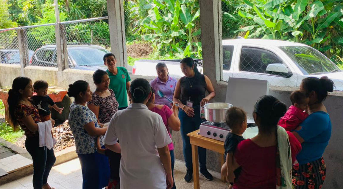 También se desarrolló un taller demostrativo en el cual se preparó arroz con chipilín y fresco de chaya con limón, utilizando ingredientes proporcionados por el MAGA. Al finalizar, se realizó la entrega de arroz y Protemás a todas las participantes, reforzando la disponibilidad de alimentos nutritivos en el hogar.