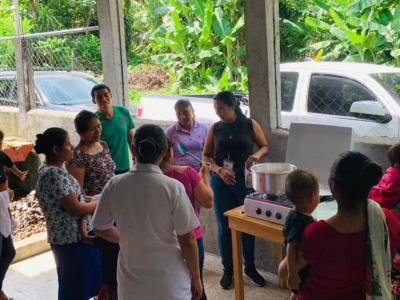 En la aldea Ocosito, San Sebastián, se impartió un taller demostrativo de preparación de alimentos a los integrantes del Centro de Aprendizaje para el Desarrollo Rural (CADER), quienes realizaron una práctica culinaria. El profesional en nutrición ofreció una charla acerca de la importancia del consumo de frutas y verduras, su aporte al sistema inmunológico, la prevención de la desnutrición y de enfermedades no transmisibles. Se incentivó el cultivo de frutas y verduras como estrategia para mejorar la calidad de vida de los agricultores y sus comunidades.