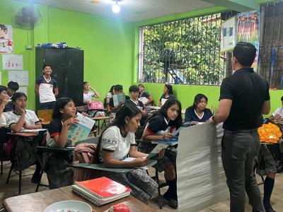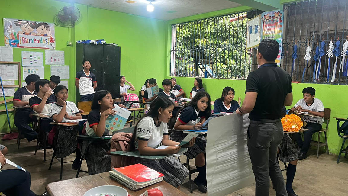 El lunes 6 de octubre, en el Instituto de Telesecundaria de nivel básico del cantón Xulá, municipio de Retalhuleu, el profesional en nutrición impartió la charla “Alimentación saludable, basada en las Guías Alimentarias para Guatemala”, dirigida a 100 estudiantes de todos los grados.