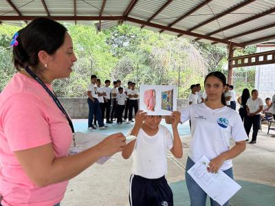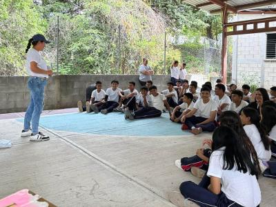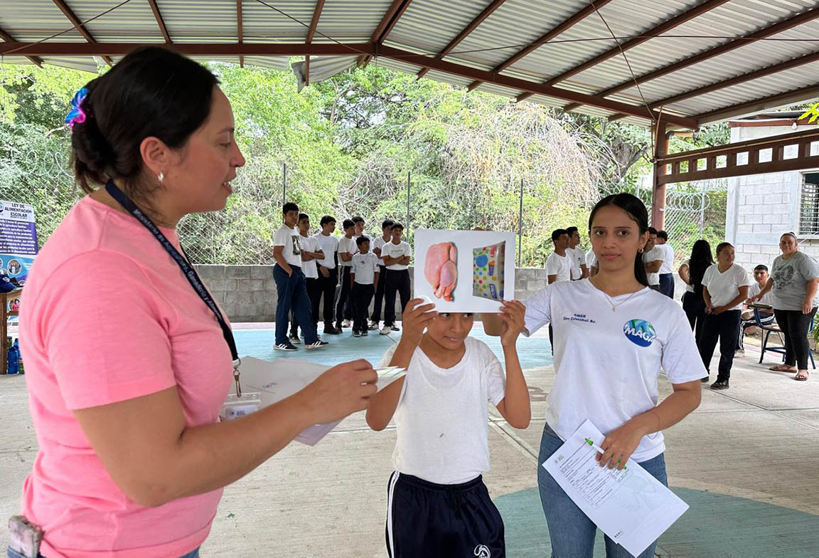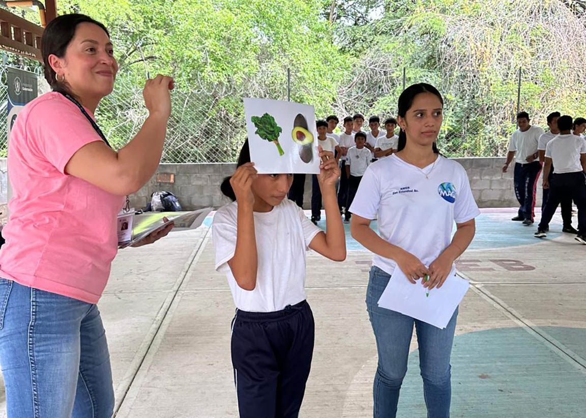 Asimismo, la nutricionista del componente de Agricultura Sensible a la Nutrición, impartió la charla “Alimentación en la Adolescencia”, en la que explicó la importancia de mantener una dieta equilibrada basada en las Guías Alimentarias para Guatemala, reforzada con dinámicas lúdicas que facilitaron el aprendizaje.