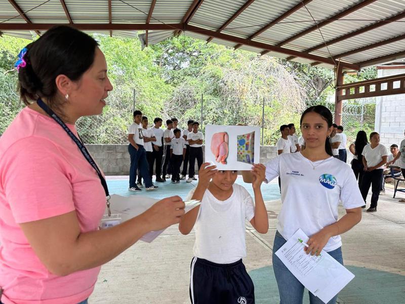 En la actividad participaron 30 alumnos de primero y segundo básico, quienes recibieron una charla acerca de la higiene personal, la cual estuvo a cargo de Fernanda Turcios, encargada del componente de Juventud, y de Kimberly Flores, educadora de Hogar Rural del municipio del MAGA.