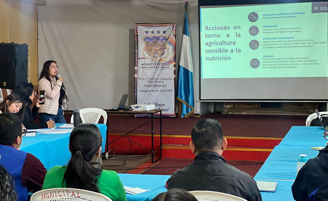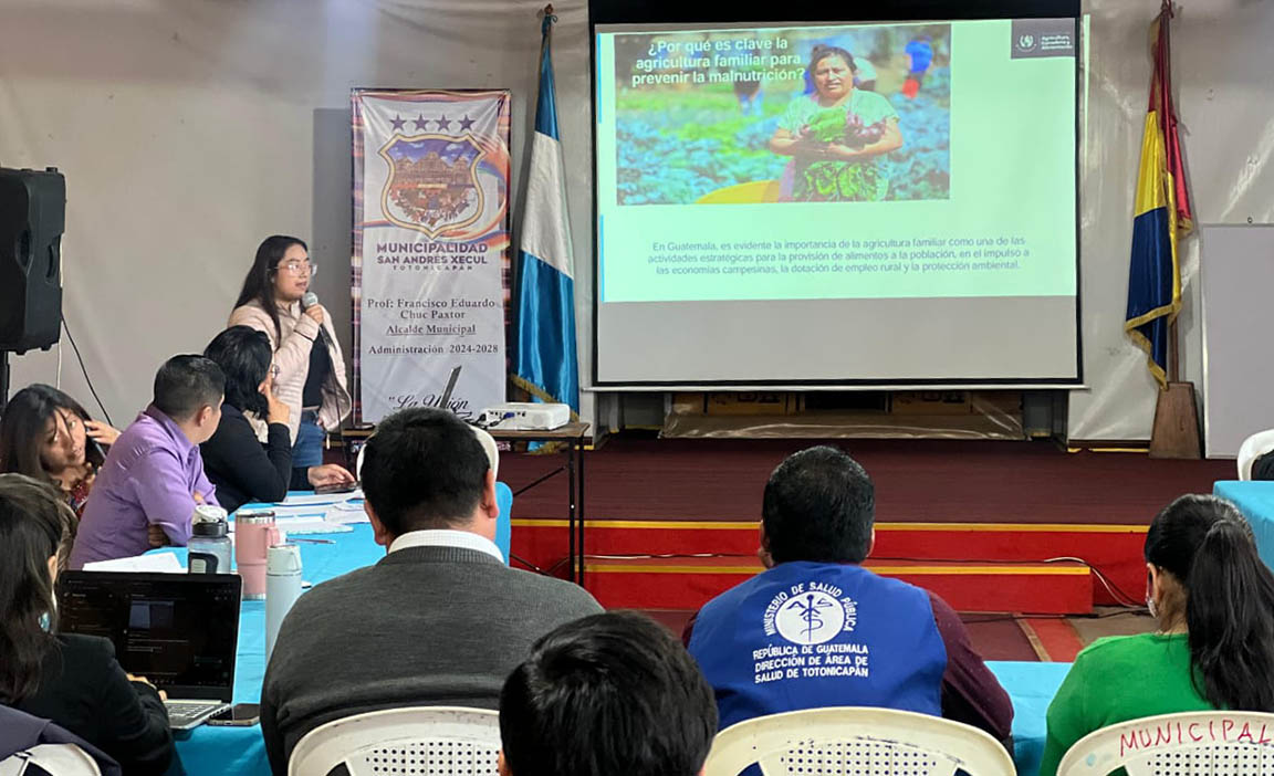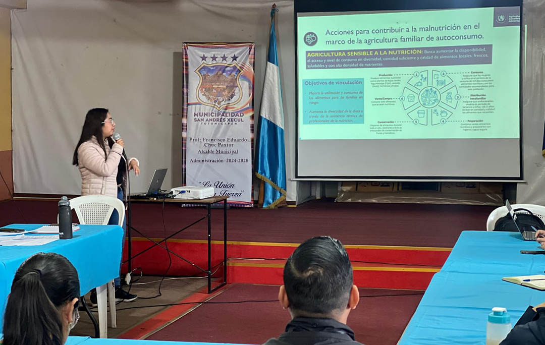 En el marco de la reunión de la Comisión Municipal de Seguridad Alimentaria y Nutricional (COMUSAN), de San Andrés Xecul, Totonicapán, el MAGA presentó la estrategia de agricultura sensible a la nutrición. Durante el encuentro, se dieron a conocer los objetivos de esta estrategia, que impulsa la agricultura familiar como un pilar clave para mejorar la calidad de la dieta de las familias y prevenir la malnutrición.