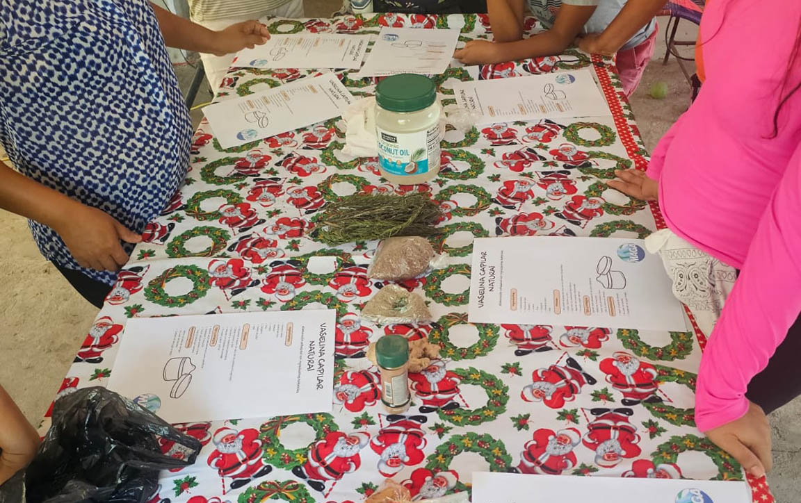La capacitación, dirigida a integrantes del Centro de Aprendizaje para el Desarrollo Rural (CADER), utilizó ingredientes accesibles y de bajo costo para fomentar el autocuidado y la higiene personal de las familias participantes.
