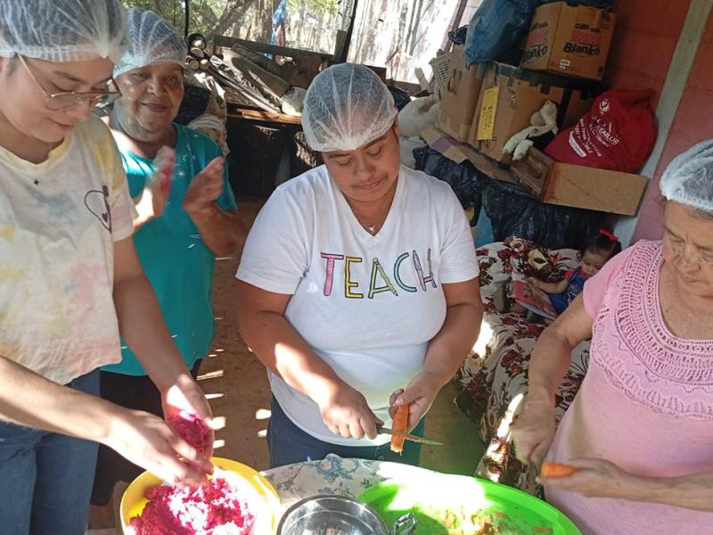 En la aldea Ovejero, El Progreso, la capacitación tuvo como principal eje la elaboración de platillos nutritivos utilizando hortalizas locales. Las participantes prepararon sopa de brócoli y tortillas fortificadas, técnicas que permiten integrar vitaminas y minerales esenciales en la alimentación diaria de forma económica y accesible, utilizando cultivos locales que ellas mismas producen o adquieren en sus comunidades.