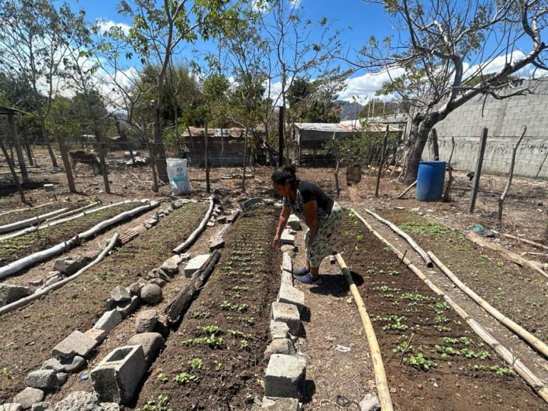 El huerto funciona como una parcela demostrativa donde se enseña el manejo adecuado de los recursos naturales, permitiendo que los conocimientos adquiridos sean replicados posteriormente en los hogares de los beneficiarios.