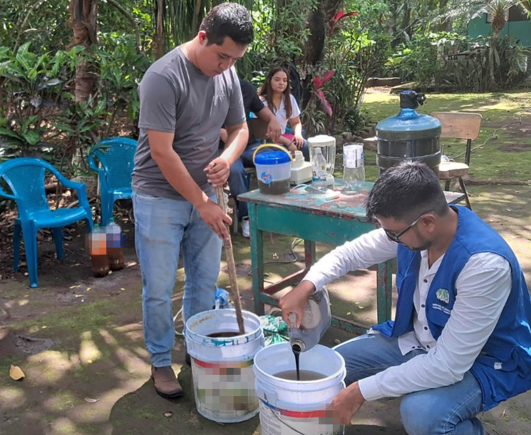 La actividad fue organizada por extensionistas de la Agencia Municipal de Extensión Rural (AMER) y estuvo centrada en la producción de fertilizantes orgánicos utilizando Microorganismos de Montaña (MM) sólidos y líquidos, así como un biopesticida orgánico M5.