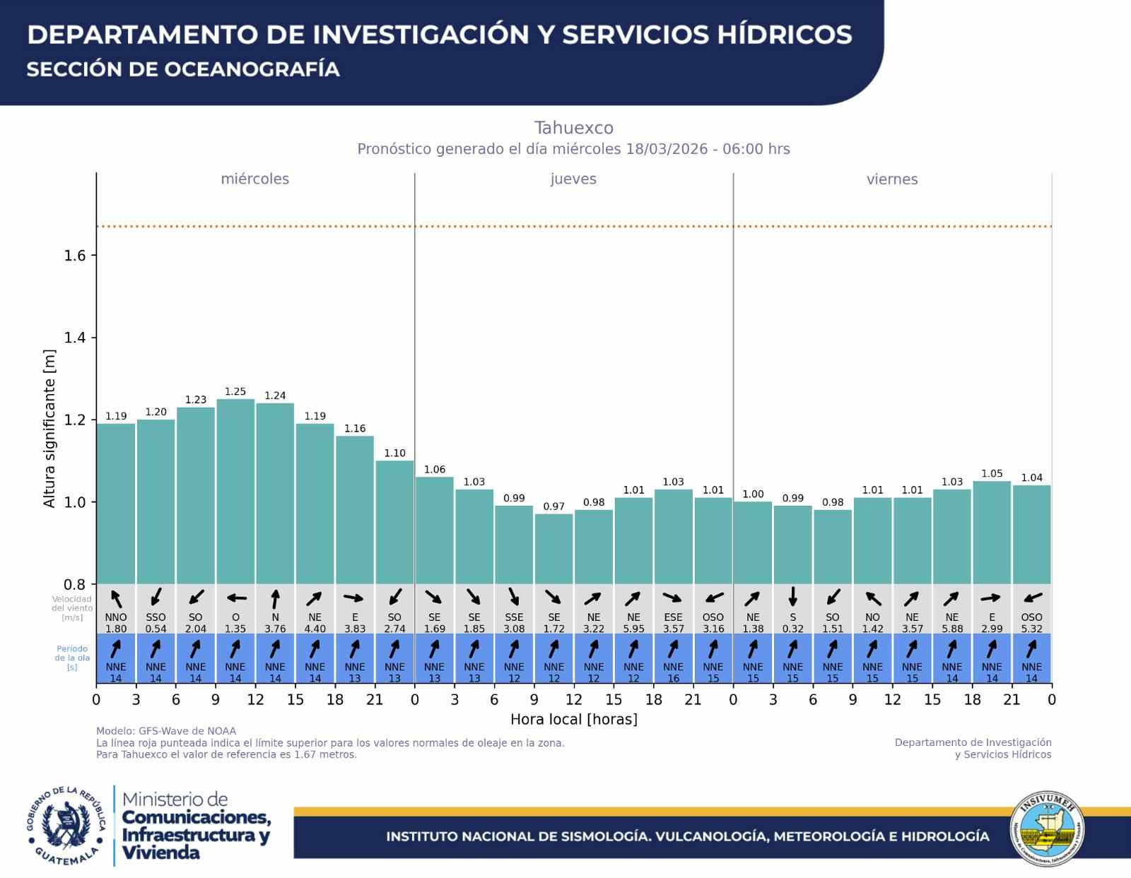 El Instituto Nacional de Sismología, Vulcanología, Meteorología e Hidrología (INSIVUMEH) ha emitido el pronóstico de oleaje para las diferentes playas y costas de Guatemala correspondiente al 18 de marzo de 2026. Este informe es crucial para las actividades marítimas, turísticas y pesqueras que se realizan en las zonas costeras del país.
