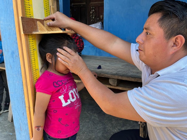 Siendo vital el desarrollo pleno de la niñez del caserío Chacpantze, San Gaspar Ixchíl, Huehuetenango, el trabajo conjunto fue clave para efectuar el monitoreo de peso y talla de menores, lo que permite velar por su nutrición y salud.