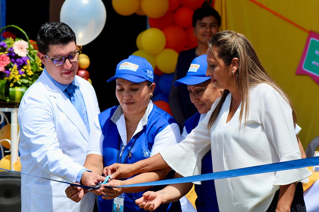 Las sonrisas, los saltos y bailes bajo un ambiente de fiesta se vivió en la Escuela Jagüey, Canalitos, zona 24, durante el relanzamiento de la campaña Vacunación en Acción.
